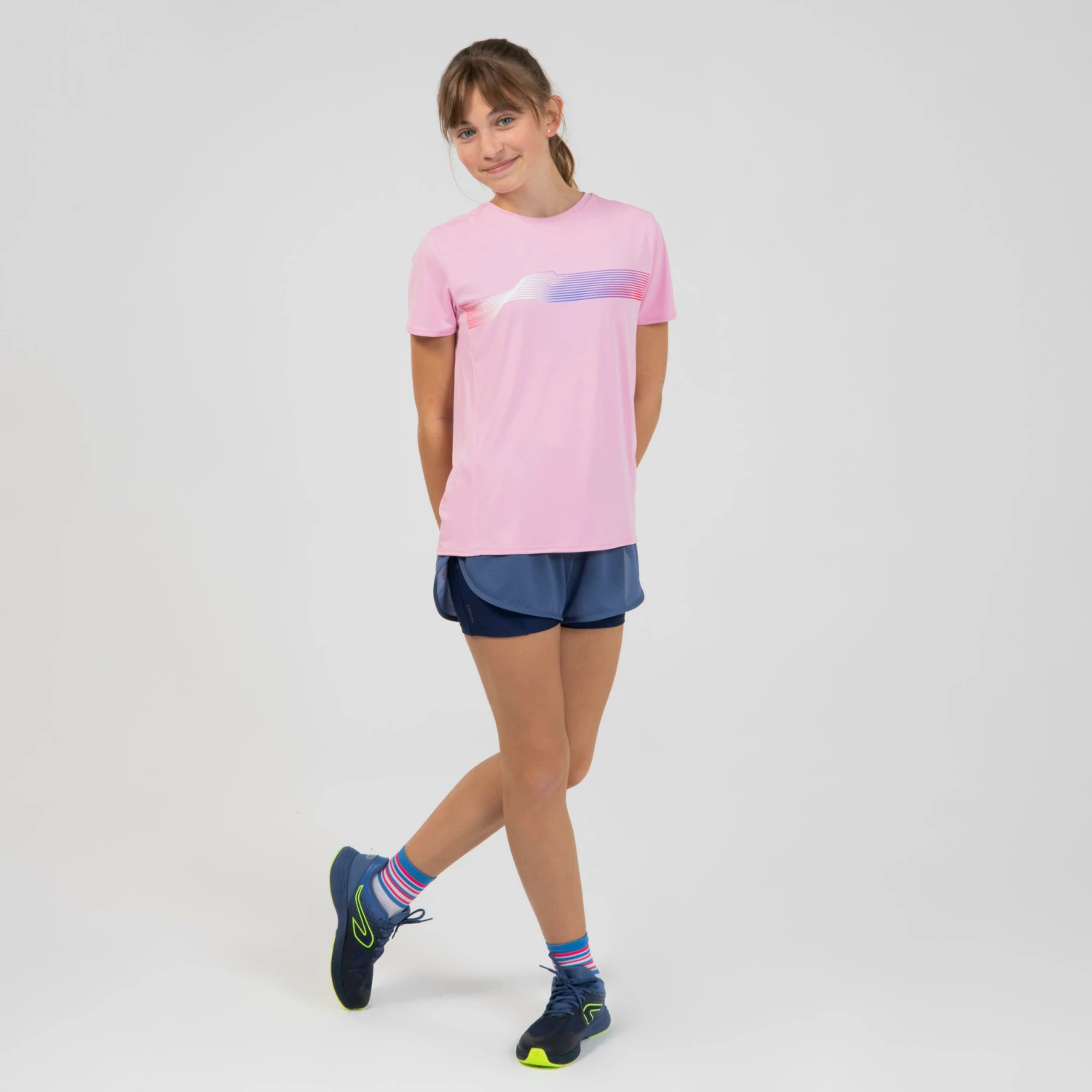 Our designers, all passionate athletes, created these kids’ shorts: ideal for running, jumping and throwing freely at school or with a club. Is your daughter not comfortable in shorts? These tight shorts cover the thighs adequately so she feels no restriction, regardless of the amplitude of her movements when doing athletics.Product Benefits