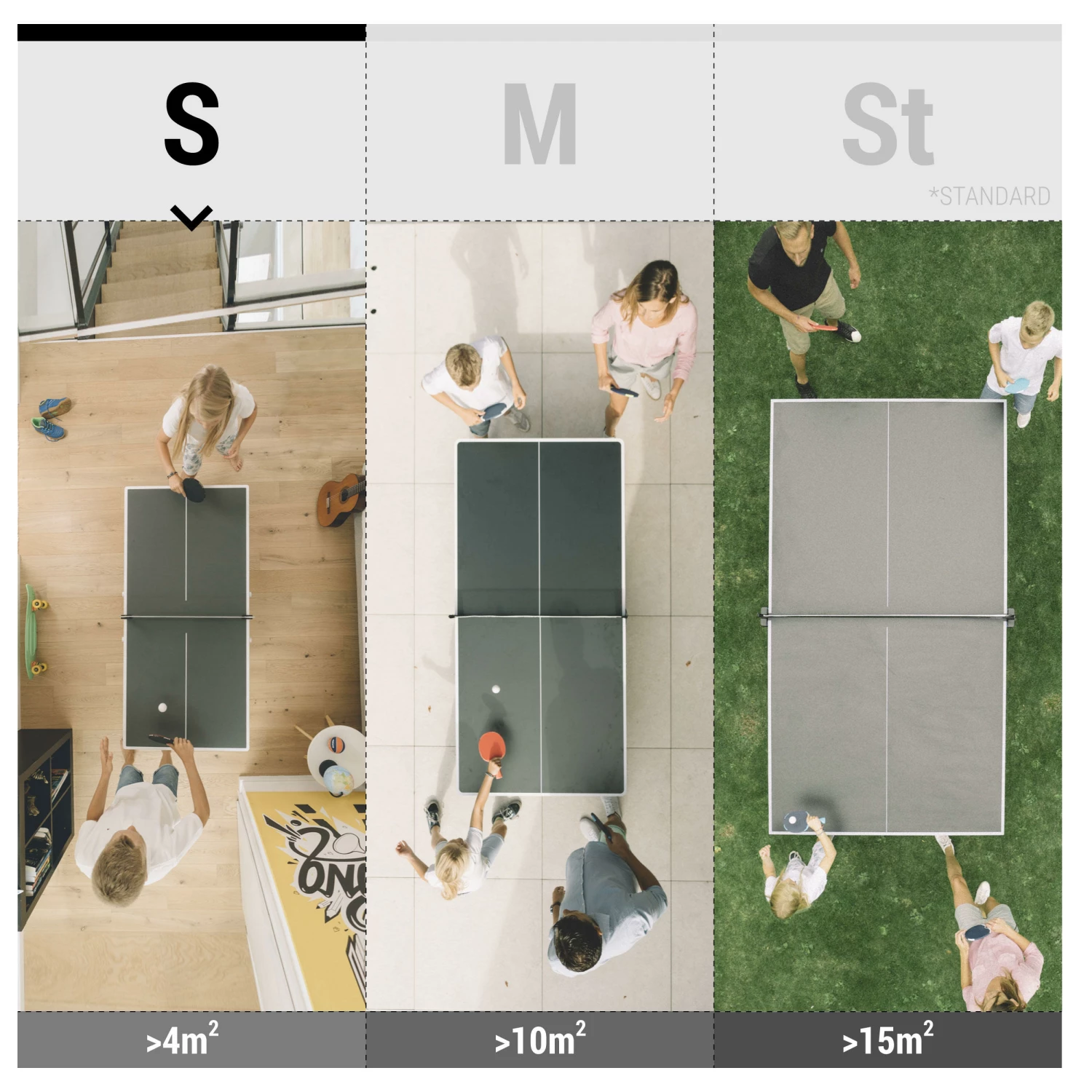 playing free ping pong without space limitations. Have fun as a family, challenge your friends or colleagues, and improve with every game!This collapsible table is quick to set up, no matter where, and can be stored in a closet.