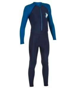 NABAIJI BOYS’ LONG-SLEEVE SHORTY SWIMSUIT 100 Navy blue/Cyan